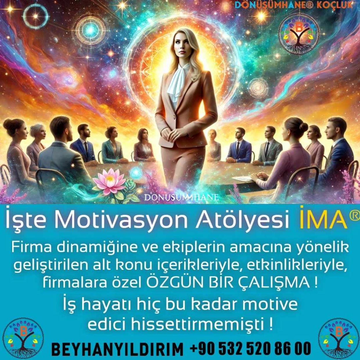 İşte Motivasyon Atölyeleri (İMA) aracılığı ile kurumsal dünyanın tabiri ile Win & Win (Kazan & Kazan) felsefesine sadık kalarak hiyerarşinin tüm kademelerinde motivasyona alan açıyorum. Artık iş yeri ilişkilerinde ima etme ihtiyacı hissetmeden, güven ortamı oluşturulup sağlıklı iletişim kurulmasına ilham ve vesile oluyorum.